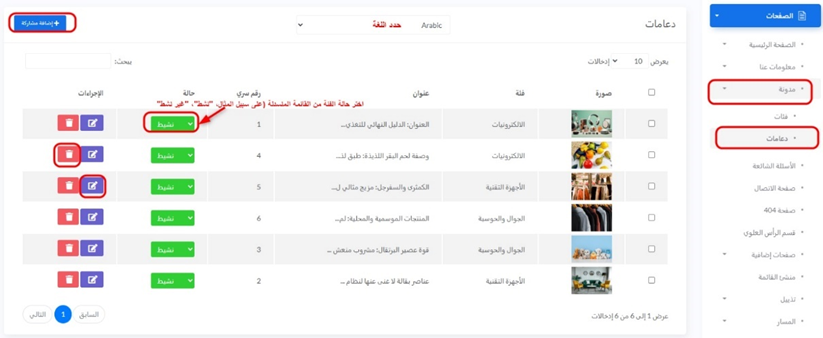 نظرة عامة: يتيح لك هذا القسم إدارة مقالات المدونة الفردية، بما في ذلك إضافة مقالات جديدة، وتعديل المقالات الحالية، وحذفها.