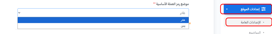 • الوصول إلى إعدادات العملة: من قائمة “إعدادات الموقع”، حدد “الإعدادات العامة”.