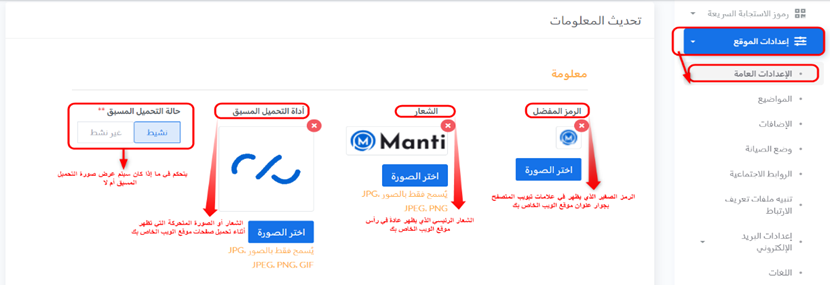 • الوصف: هو الشعار أو الصورة المتحركة التي تظهر أثناء تحميل صفحات موقعك.
