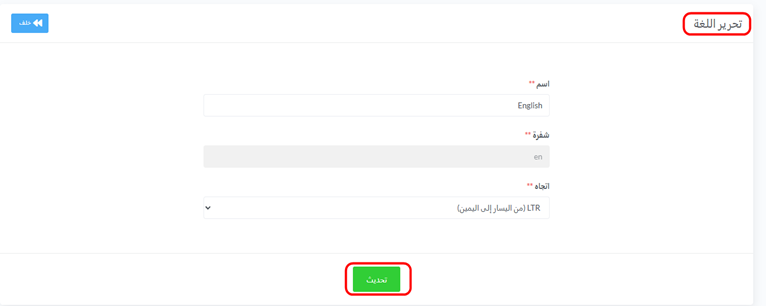 - الوصف: لتعديل تفاصيل اللغة نفسها (مثل اسمها أو رمزها).
