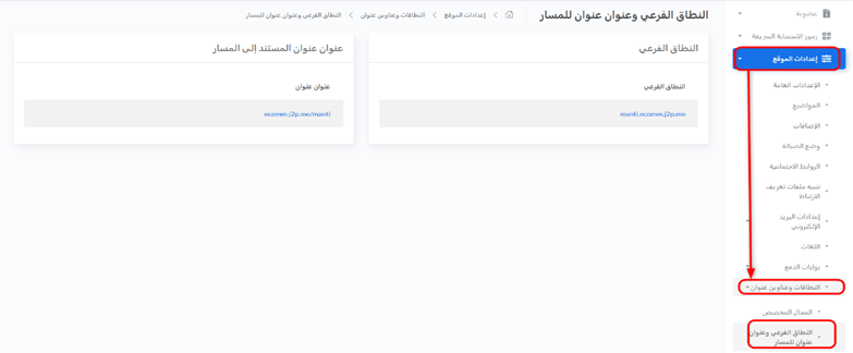 يتيح لك هذا القسم إدارة كيفية وصول المستخدمين إلى موقعك عبر الإنترنت، سواء من خلال نطاق مخصص ، أو نطاق فرعي ، أو مسار URL ضمن النطاق الرئيسي للمنصة.