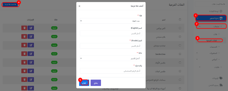 o ( بالعربي و الانجليزي )الاسم : أدخل اسم التصنيف الفرعي الجديد الخاص بك.