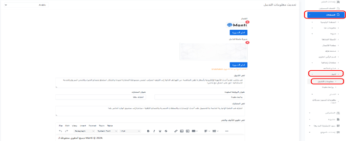 نظرة عامة: يتيح لك هذا القسم إدارة محتوى تذييل موقع الويب الخاص بك، بما في ذلك معلومات حقوق النشر وروابط مفيدة.