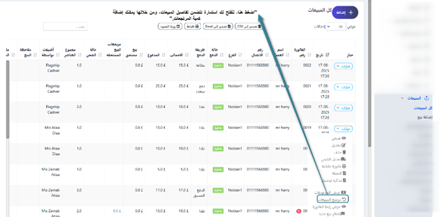 لإضافة دفعة لإرجاع المبيعات اتبع الخطوات التالية: