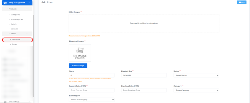 - Description: (Optional) Choose the subcategory for the product from the dropdown list, which will be available based on the category you selected.