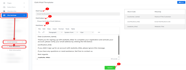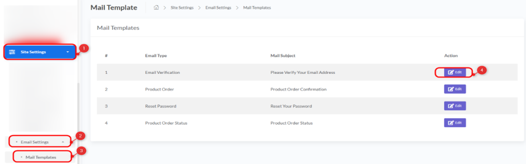 This section allows you to view and manage various email templates that your website sends automatically in specific scenarios (e.g., email verification, order confirmation, password reset).