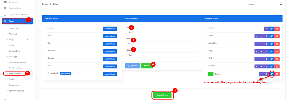 Access: To access the “Menu Builder” settings, navigate to “Pages” -> “Menu Builder” in your dashboard.