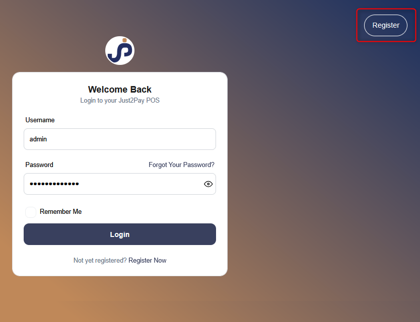 • On the Welcome Page, click the Register Business button to begin the registration process.